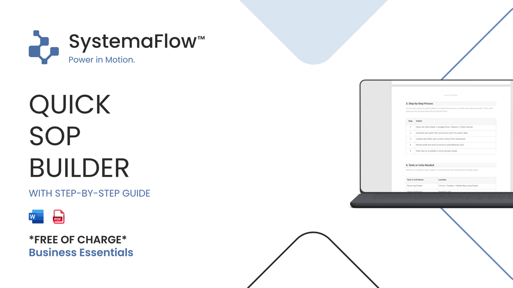 • 1 x Quick SOP Builder Template - Microsoft Word (.docx) and fillable PDF